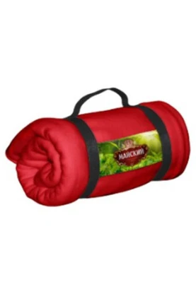 Материал: для пледа - флис плотностью 280 гр./м² стандартных цветов; для ремешка - ременная лента (стропа) стандартных цветов шириной 3 см; для вставки - оксфорд сублимационный.