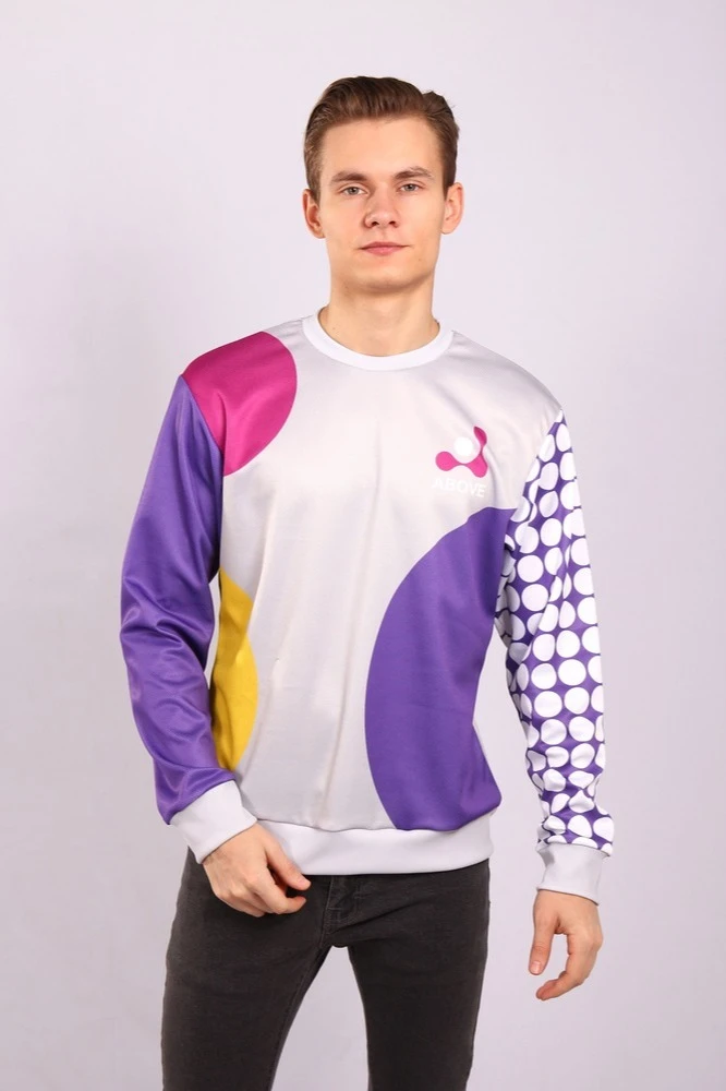 Сублимация. Полноцветная печать осуществляется на всей поверхности свитшота в процессе производства. Изображение располагается в соответствии с лекалом. Нанесение входит в стоимость свитшота.