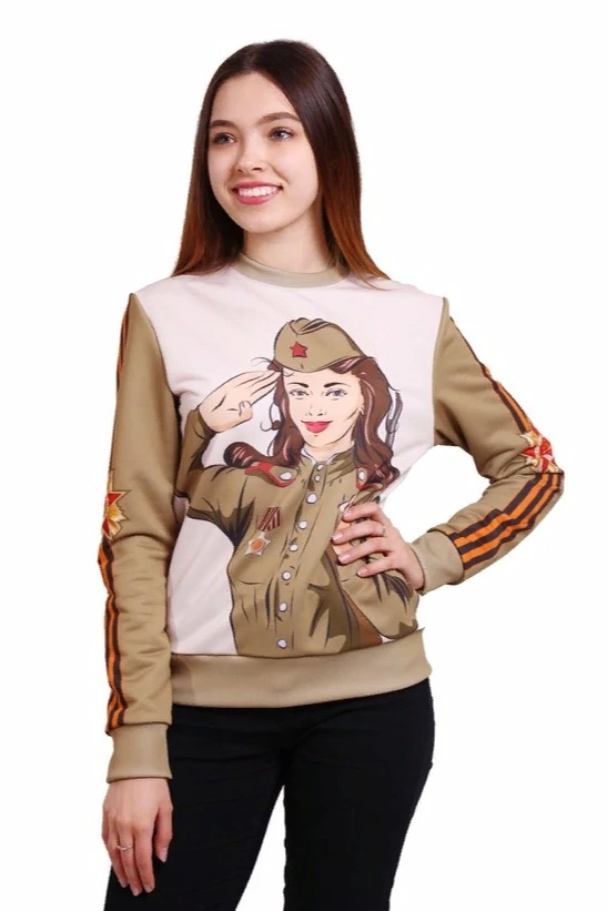Сублимация. Полноцветная печать осуществляется на всей поверхности свитшота в процессе производства. Изображение располагается в соответствии с лекалом. Нанесение входит в стоимость свитшота.