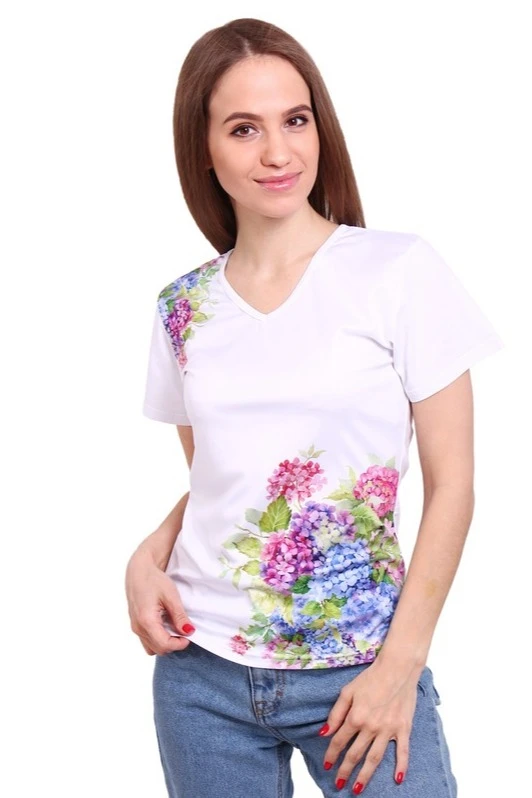 Майка Гэлэкси с коротким рукавом имеет приталенный силуэт, подчеркивающий всю красоту женской фигуры. Данная модель пленит своей возможностью почувствовать покупателю комфорт, даже в жаркий период времени. А на таком белоснежном полотне можно воплотить рисунки, которые будут выглядеть как живые, всему этому поспособствует правильный выбор материала и техники нанесения.