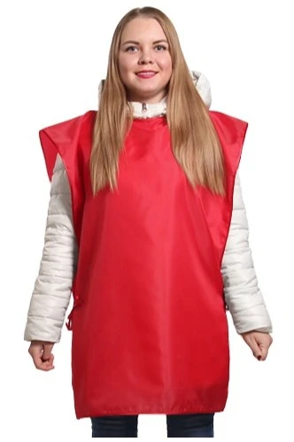 Модель: Накидка прямоугольной формы без карманов. По желанию клиента накидка может быть пошита с одним карманом 20х25 см, либо двумя карманами 13х16 см (оплачивается дополнительно). Края и горловина накидки обрабатываются косой бейкой, завязки выполнены из косой бейки длиной 30 см. Возможна обработка края накидки швом вподгибку, горловина обрабатывается косой бейкой, завязки выполнены из брючной ленты белого или черного цветов, длиной 30 см. За дополнительную плату крепление может быть изготовлено из резинки (ширина 2,5 см), либо липы, либо завязок из брючной ленты белого или черного цветов с креплением "межуровневый замок".