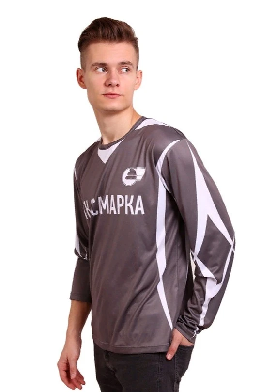 Чудесный серый лонгслив с длинным рукавом, в меру обтягивающий, со свободными рукавами. Имеет великолепные узорчатые фигуры в виде белых вставок на рукавах и по длине на боках. Печать на поверхности материала прекрасно дополняет весь стиль лонгслива. Выполним печать логотипов, эмблем, фирменных знаков и наименований.
