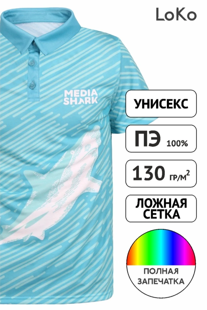 Сублимация. Полноцветная печать осуществляется методом сублимации на всей поверхности футболки в процессе производства. Изображение располагается в соответствии с лекалом. Совмещение изображения на швах осуществляется за дополнительную плату.