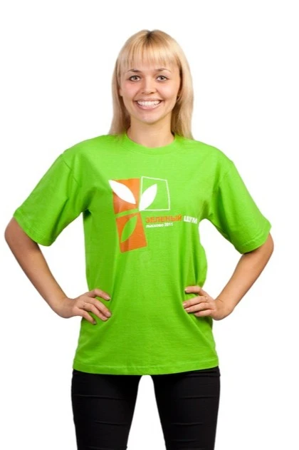 Шелкография. Максимальный размер нанесения не более 39х42 см. Возможна печать на рукавах футболки. Для печати на темных и цветных футболках необходима подложка белого цвета. Нанесение осуществляется пластизолевыми красками. Возможна печать растровых изображений.