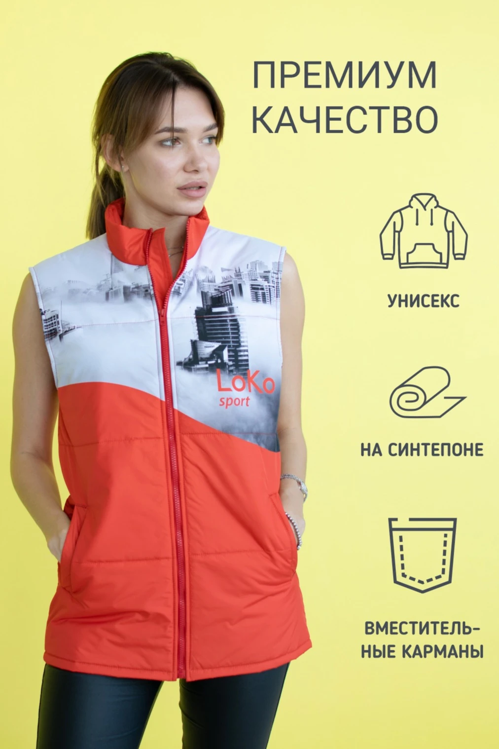 Жилет Портер на синтепоне выручит в прохладные осенние и весенние дни. Это стильная и удобная вещь премиального качества, которая отлично смотрится, не стесняет движений во время активных прогулок, подходит для занятий спортом на улице. Хорошо выдерживает большое количество стирок, безупречно сохраняя внешний вид. Жилеты производятся с полной запечаткой, изображения наносятся по вашему образцу.