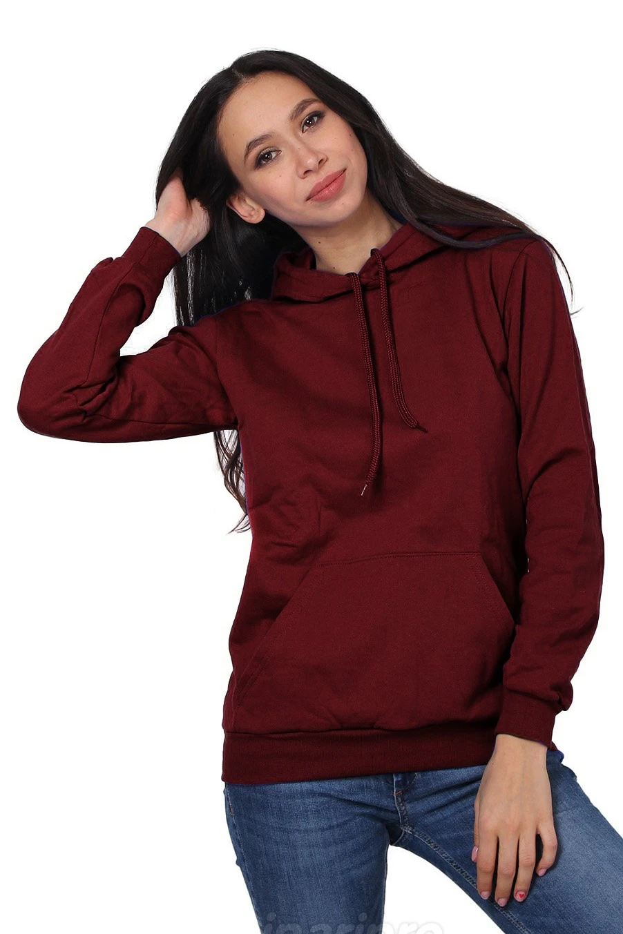 Модель. Толстовка унисекс с прямым силуэтом. Длинные рукава с манжетами. Манжеты рукавов и низ толстовки обработаны тканью рибана (специальная тканая резинка) в цвет толстовки. Толстовка с капюшоном и накладным карманом «кенгуру». В капюшон продет плоский шнур, у которого запаяны концевики. Капюшон с подкладом из кулирной глади в тон футера.