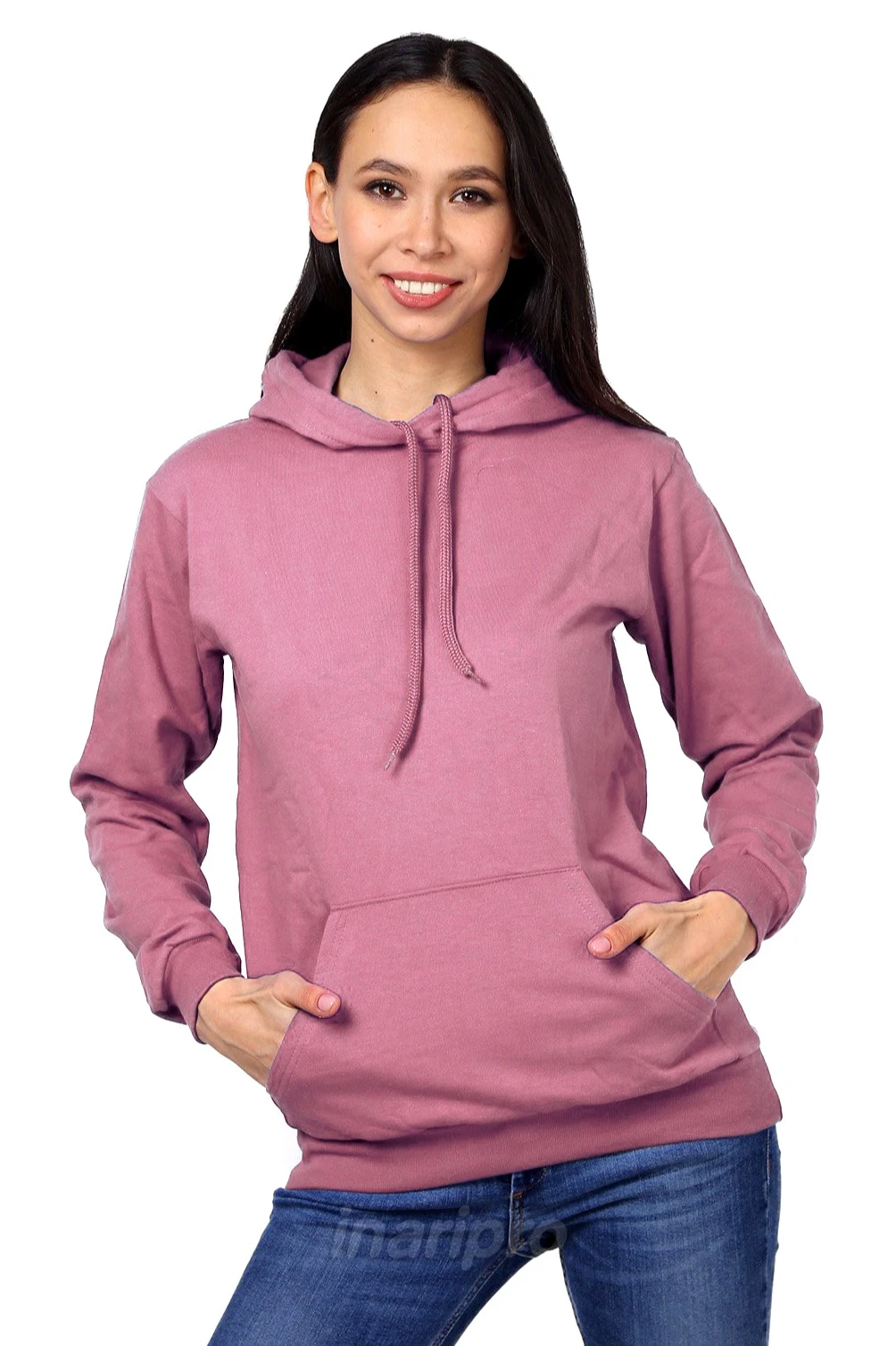 Модель. Толстовка унисекс с прямым силуэтом. Длинные рукава с манжетами. Манжеты рукавов и низ толстовки обработаны тканью рибана (специальная тканая резинка) в цвет толстовки. Толстовка с капюшоном и накладным карманом «кенгуру». В капюшон продет плоский шнур, у которого запаяны концевики. Капюшон с подкладом из кулирной глади в тон футера.