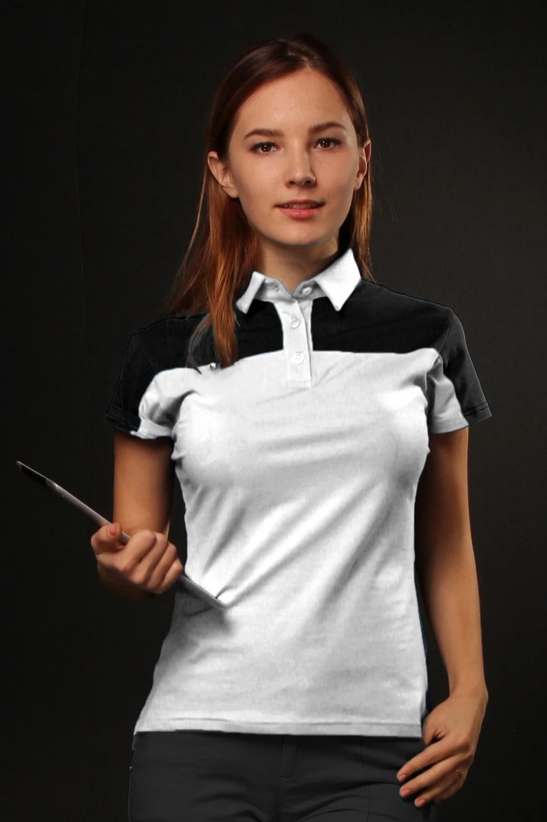 Поло Драйв женская, комбинированная белая с чёрной вставкой