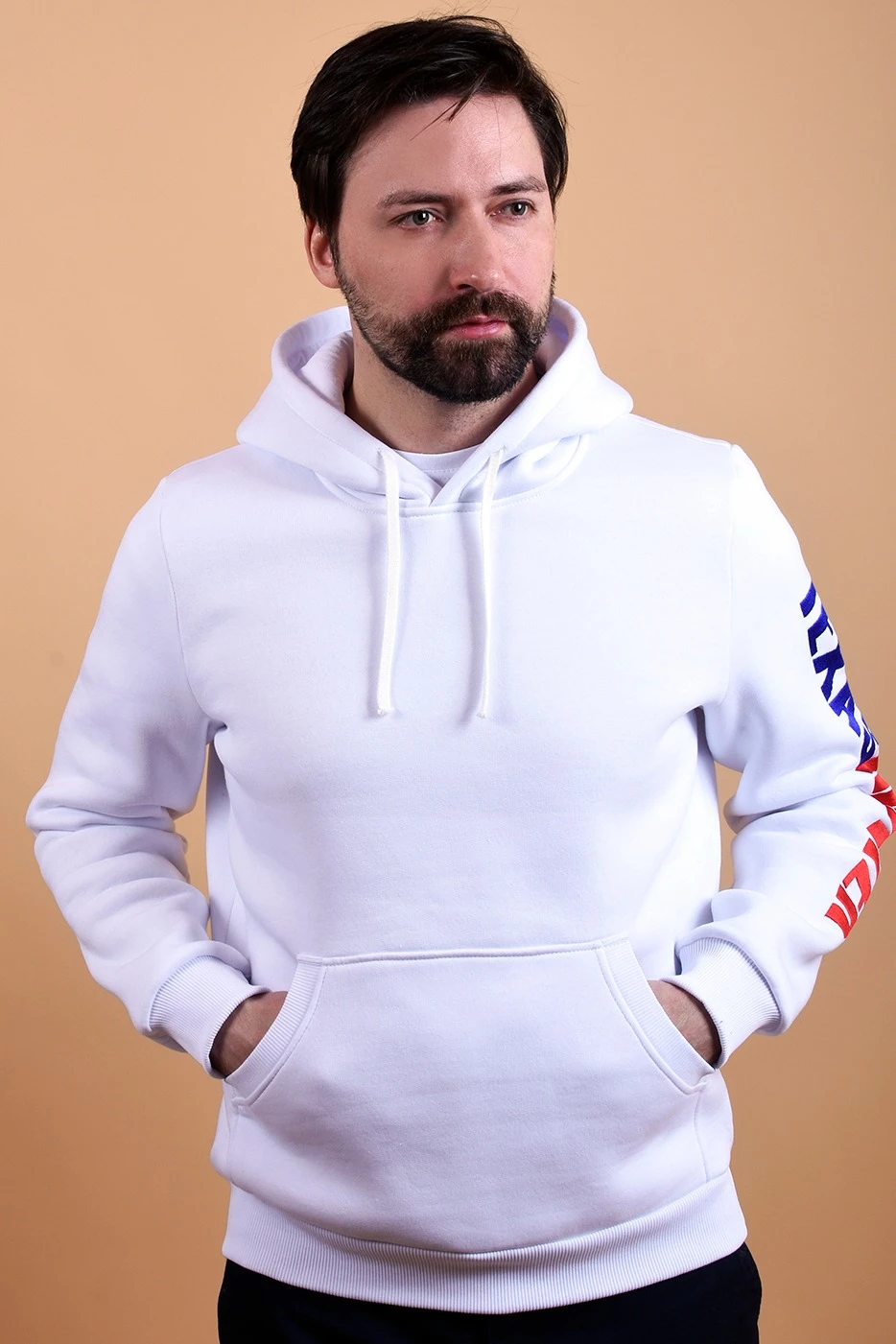 Вышивка. Изображение располагается в соответствии с лекалом. Минимальная высота буквенного написания 5 мм. Возможна вышивка на рукавах толстовки. Нанесение не входит в стоимость товара и осуществляется за дополнительную плату.