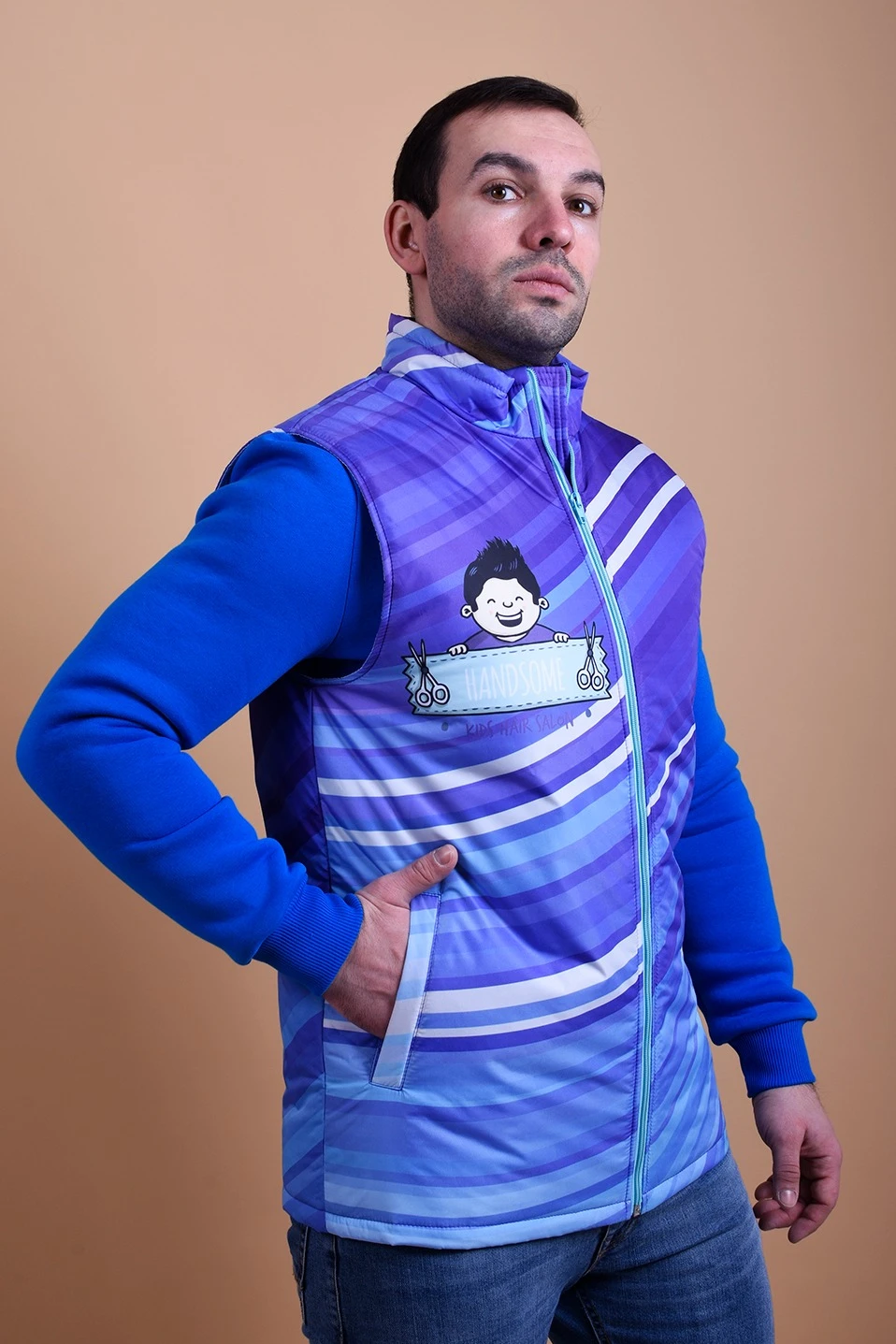 Жилет Детройт без капюшона унисекс, с полной запечаткой "Handsome"