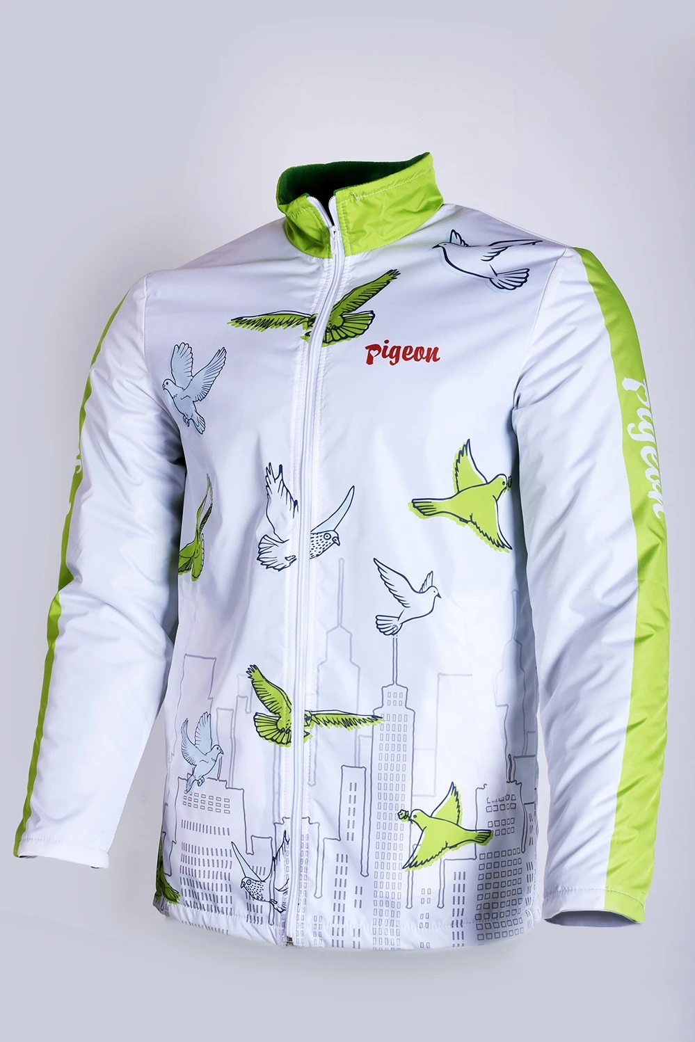 Куртка Бриз без капюшона на флисе унисекс, с полной запечаткой "Pigeons"