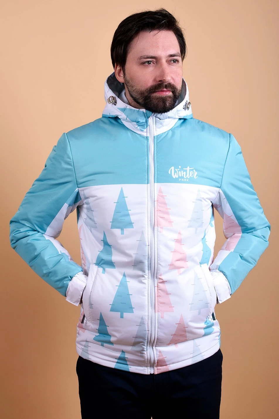 Куртка Норд с капюшоном на синтепоне унисекс, с полной запечаткой "Winter trees"