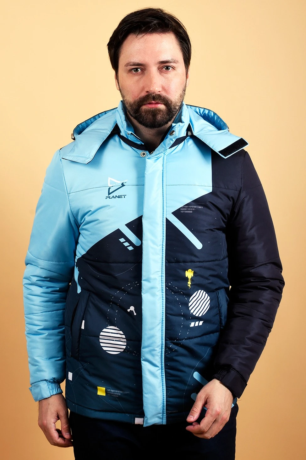 Куртка Винтер с капюшоном на синтепоне унисекс, с полной запечаткой "Outer space"