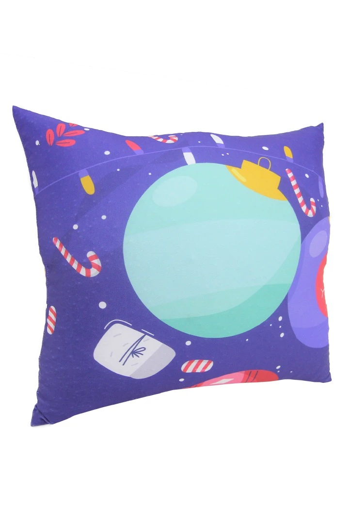 Подушка из габардина 35х35 см (холлофайбер), с полной запечаткой "Елочные игрушки"
