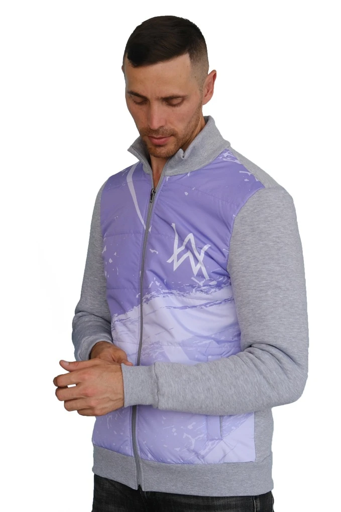 Модель. Толстовка прямого силуэта, имеет два прорезных кармана в листочку, полочка со стандартной стежкой. Основной материал футер 3-х нитка, полочка выполнена из дьюспо с подкладом из кулирной глади, по середине прослойка из 60 гр. синтепона. Воротник, манжеты рукавов и низ толстовки выполнены из кашкорсе стандартных цветов.