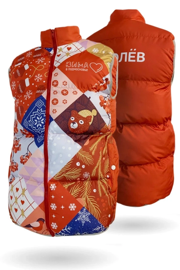 Жилет Морган Лайт с подкладом из лебяжьего пуха унисекс, с полной запечаткой "Зимний узор"