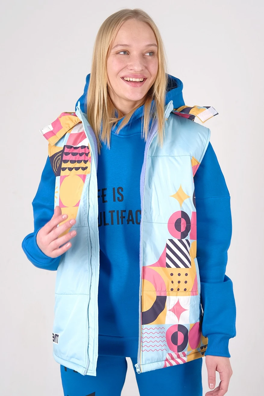 Жилет Диего на синтепоне с капюшоном унисекс, с полной запечаткой "Team"