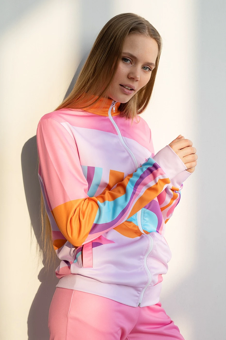 Модель. Толстовка Алекс прямого силуэта без подклада, на молнии с длинными рукавами. Толстовка без капюшона. Имеет два прорезных кармана в листочку без молнии. Низ толстовки, манжеты рукавов и горловина выполнены из сублимационной ткани сандвич браш.