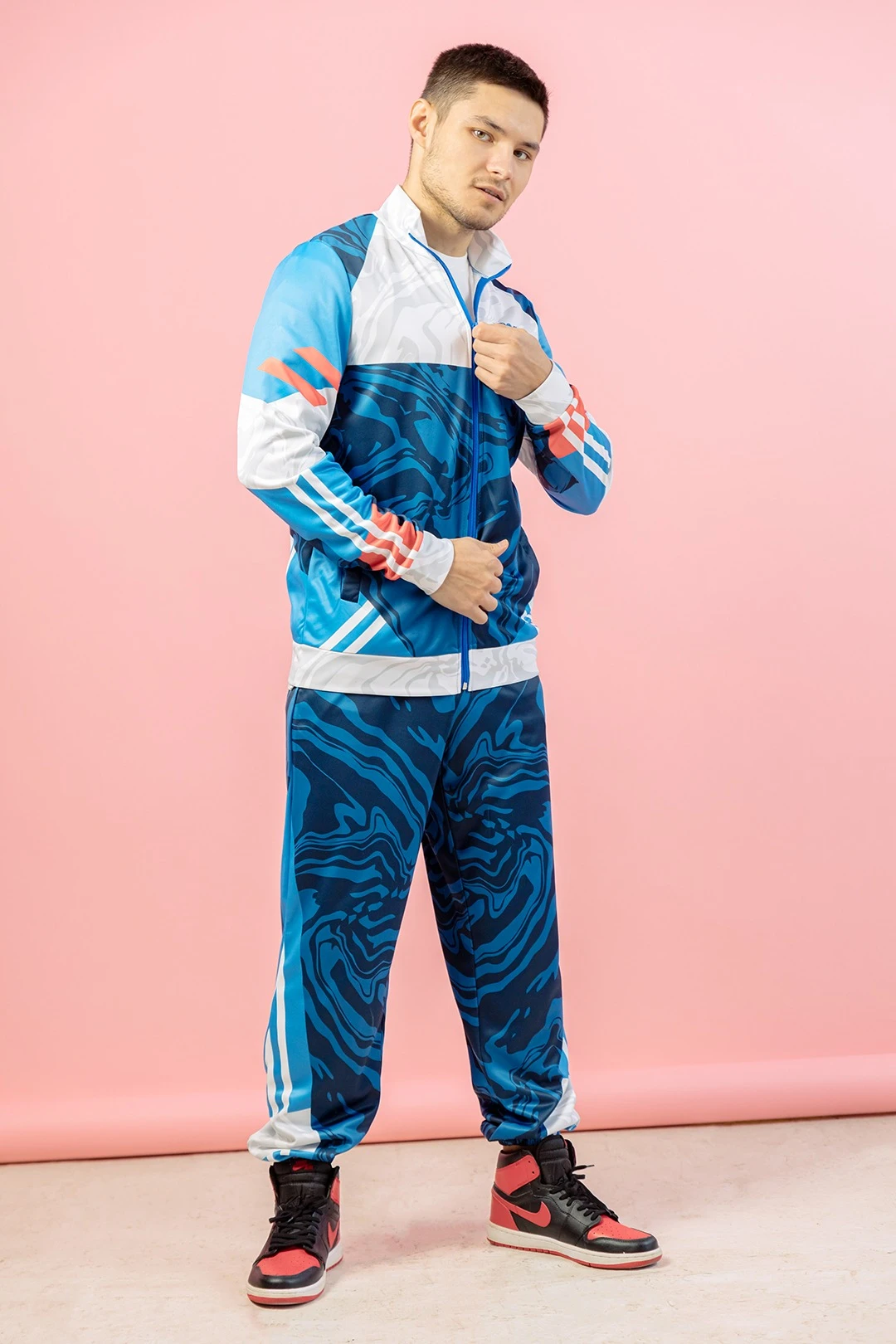 Модель: Спортивный костюм Стайлинг унисекс состоит из толстовки и брюк: