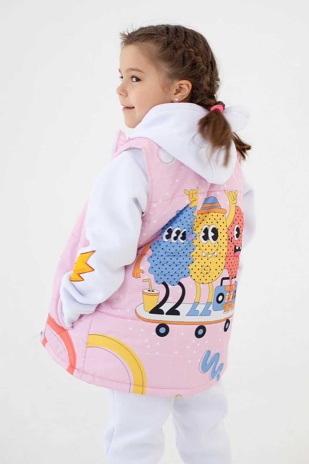 Модель: Жилет Портер детский, с прямым силуэтом, без капюшона. Жилет на молнии, подклад из шелка расцвечивания с прокладкой из синтепона, со стандартной стежкой. Два прорезных кармана в листочку.