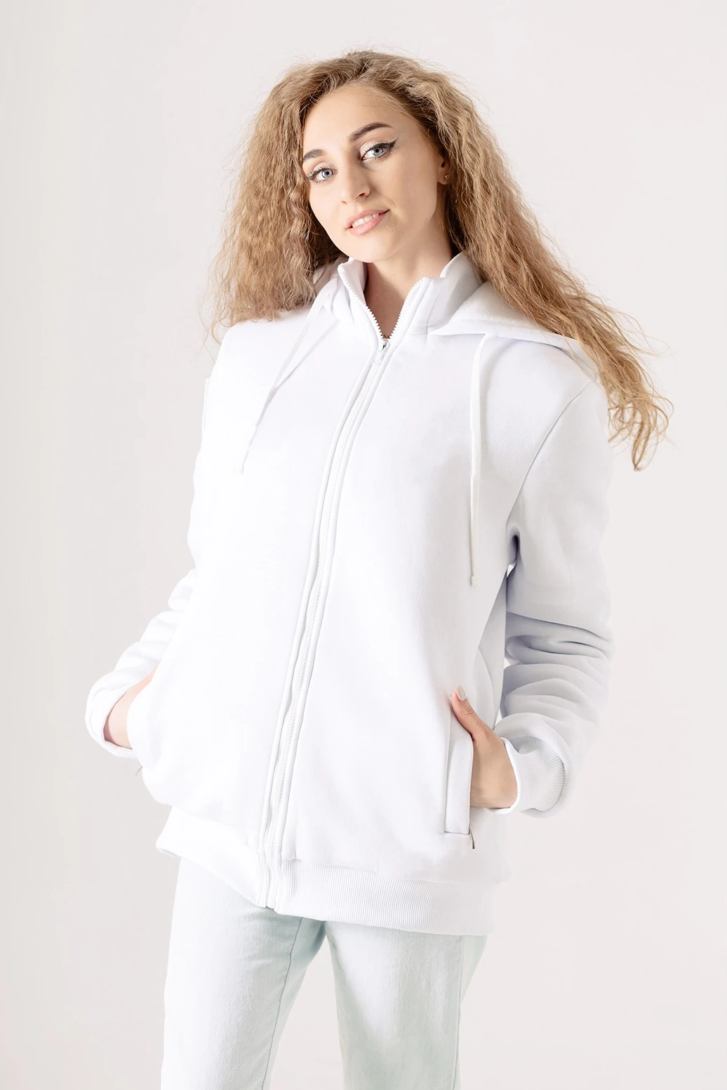 Балахон Джеймс из футера на флисе унисекс, однотонный белый