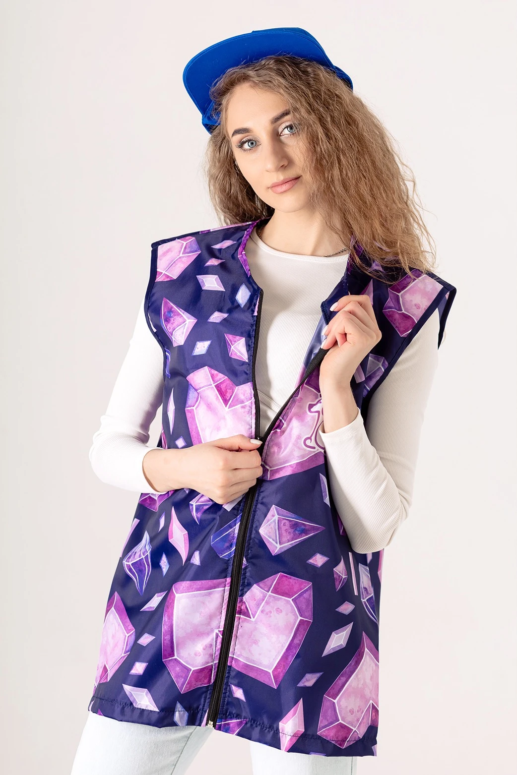 Модель: Жилет Парма прямого силуэта, без подклада. Застегивается на молнию. Жилет без воротника, с V-воротом.