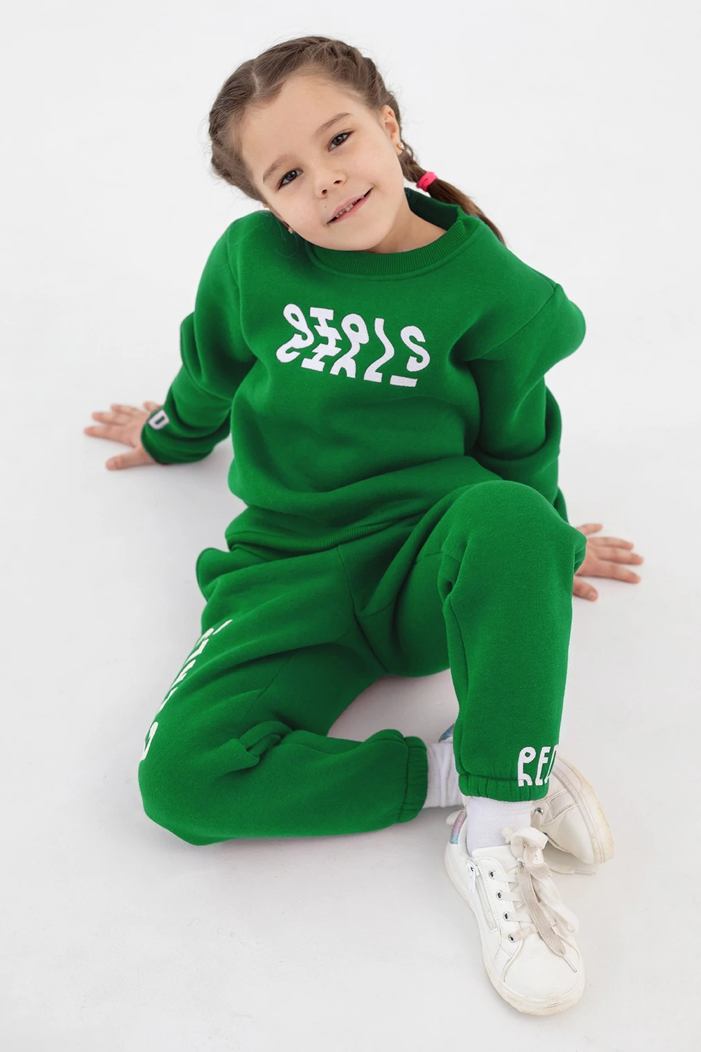 Свитшот Тревис из футера детский, однотонный зеленый