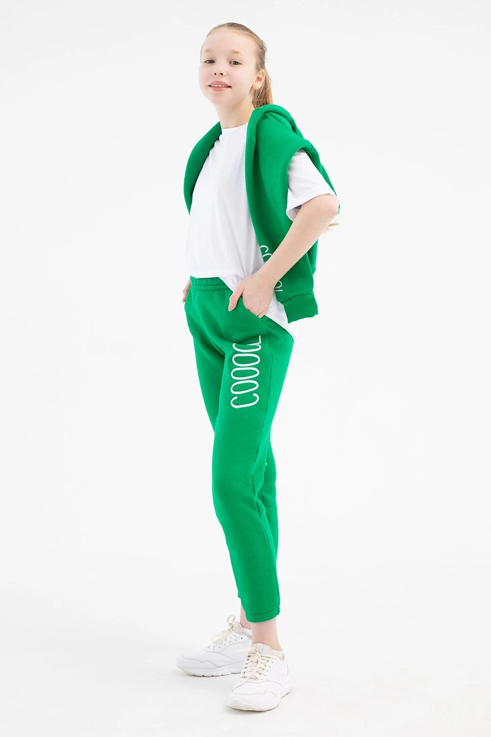 Спортивный костюм Кидс из футера детский, однотонный зеленый