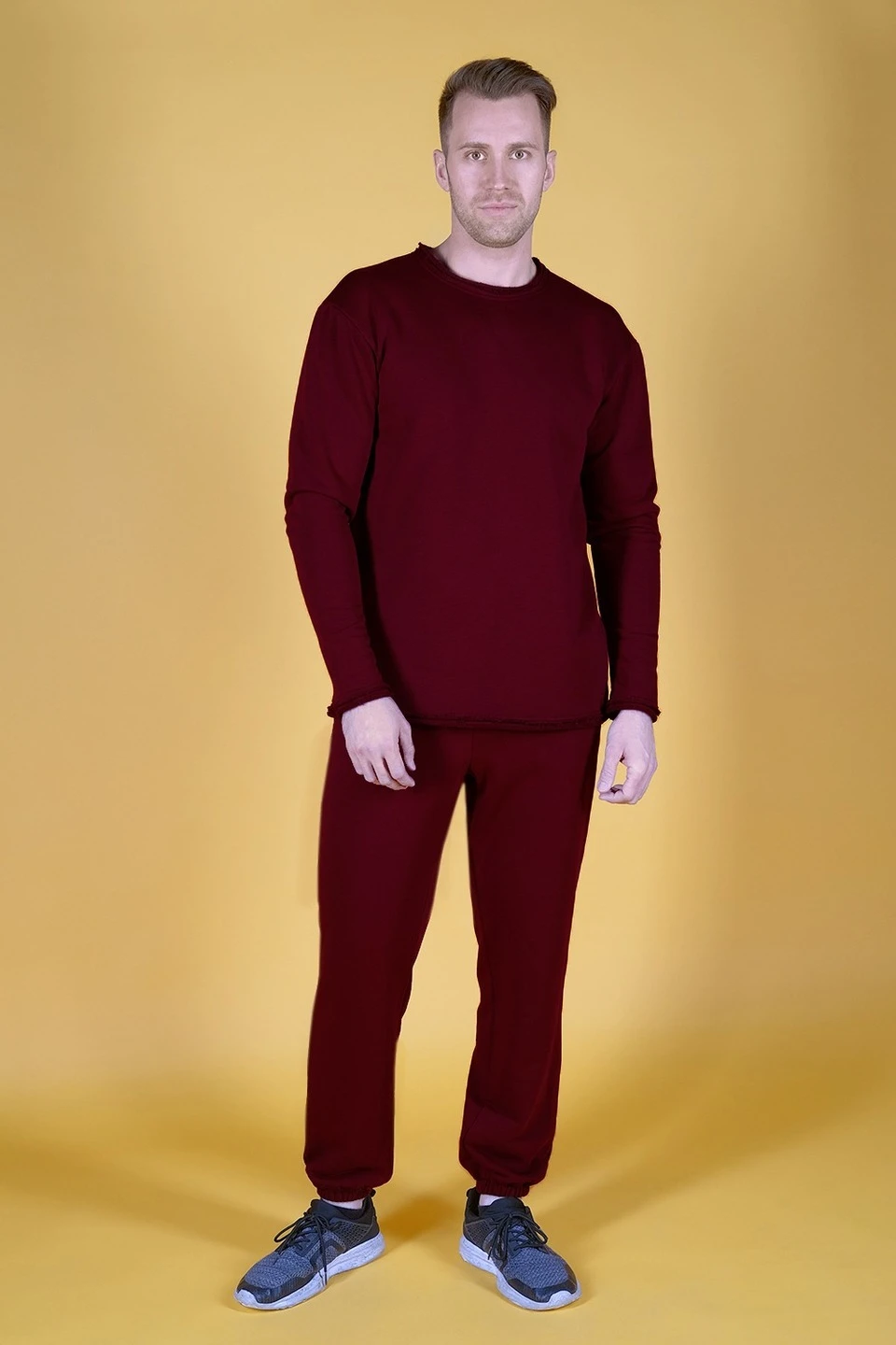 Толстовка. Прямой силуэт, без молнии с длинными рукавами и опущенной линией плеч. Низ толстовки и рукавов, а также горловина с имитацией необработанного края. Толстовка без капюшона и карманов.