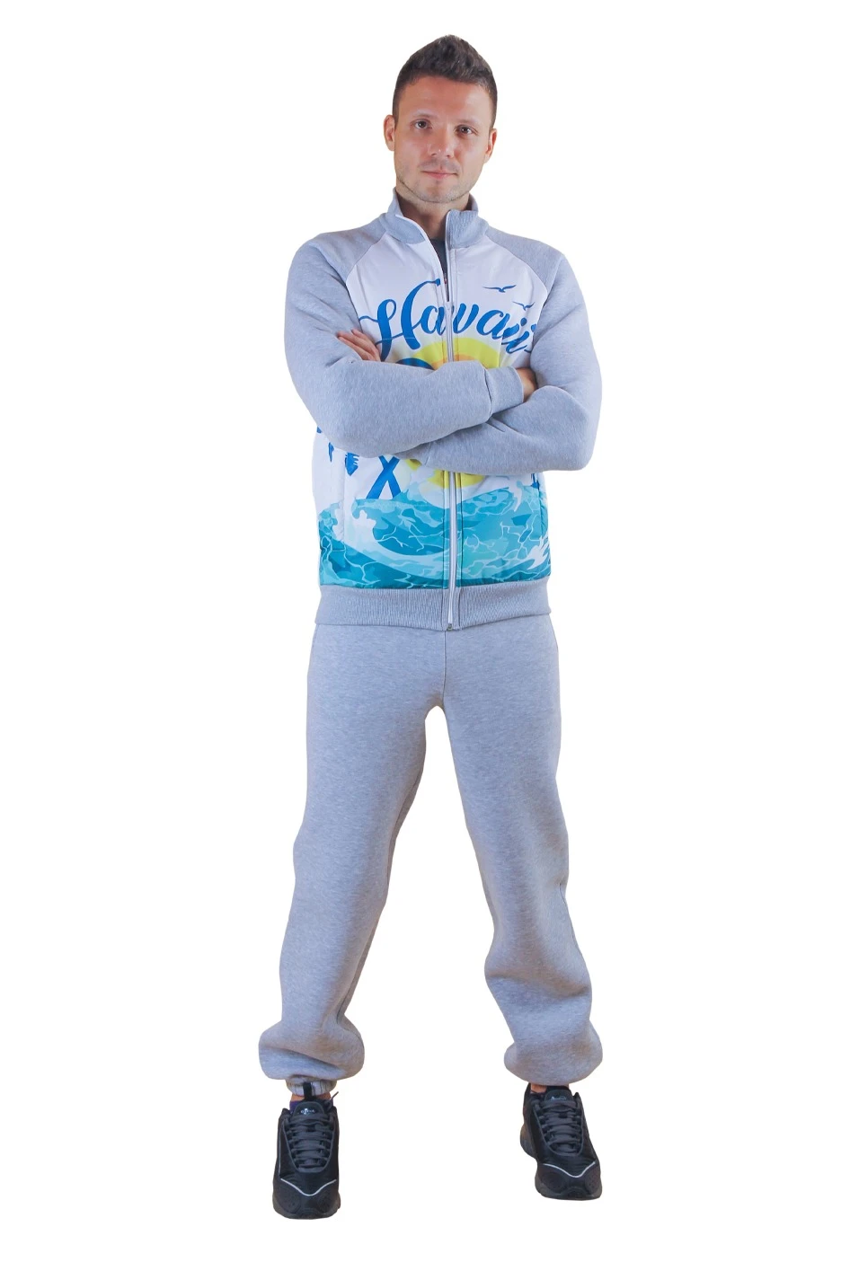 Теплые и удобные спортивные костюмы Кроссфит с частичной запечаткой. Их особенность - толстовка со вставками с полной запечаткой, а рукава толстовки и брюки пошиты из футера, который впитывает влагу. По заказам клиентов мы профессионально размещаем на изделии оригинальные логотипы, эмблемы, рисунки и рекламные слоганы.