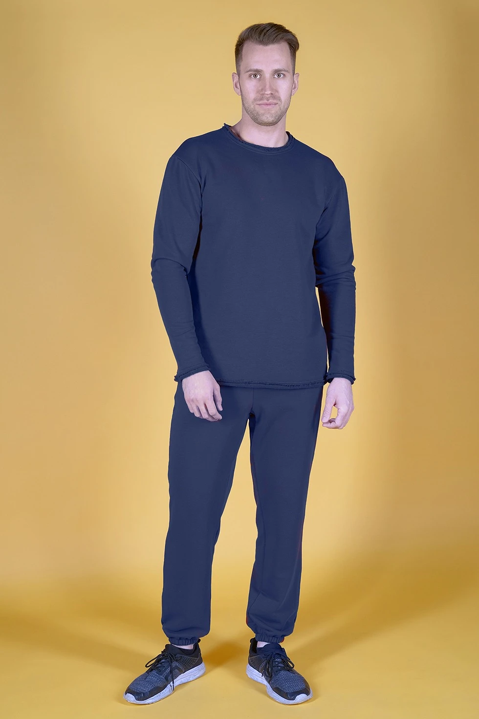 Толстовка. Прямой силуэт, без молнии с длинными рукавами и опущенной линией плеч. Низ толстовки и рукавов, а также горловина с имитацией необработанного края. Толстовка без капюшона и карманов.