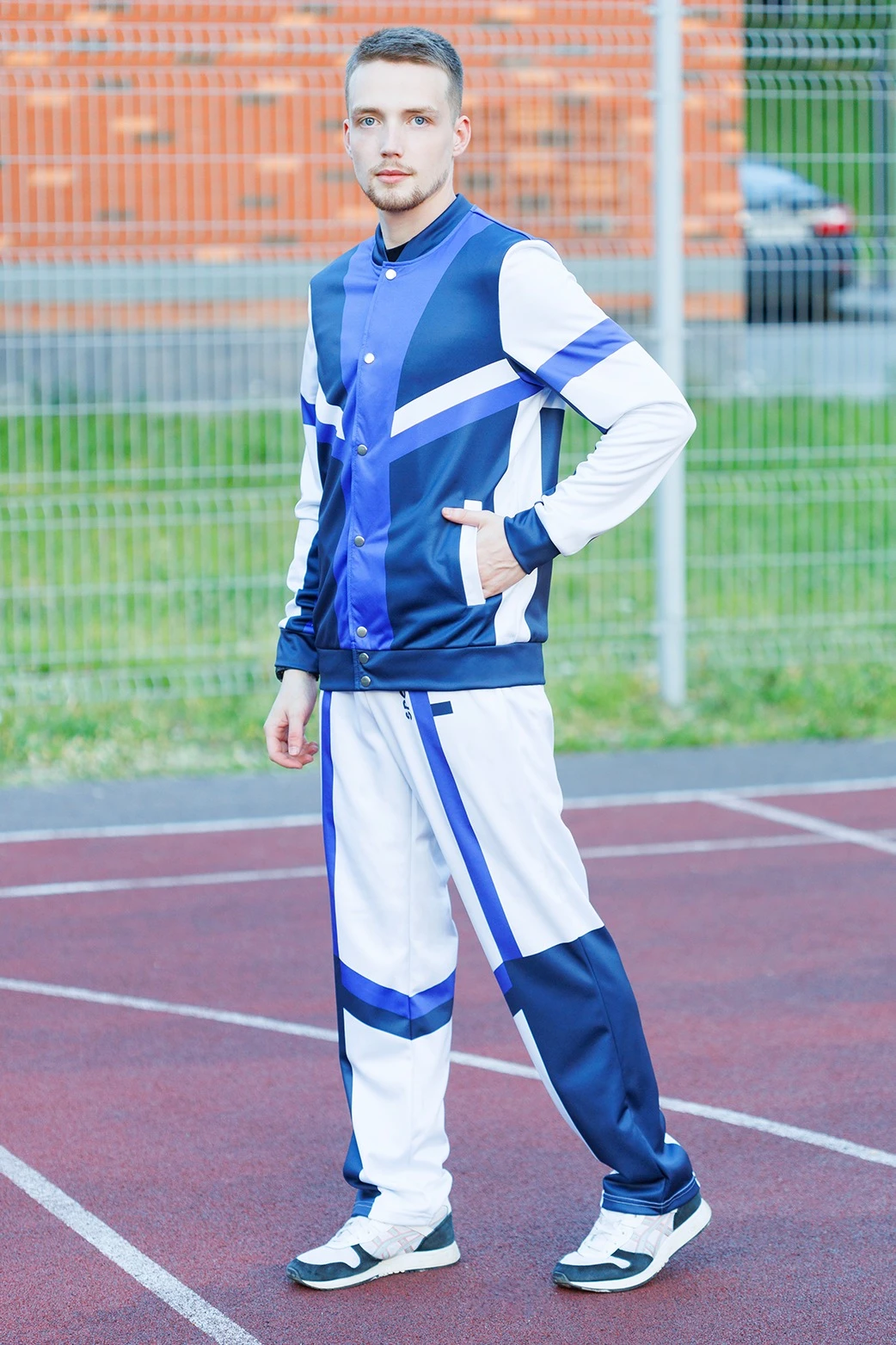 Модель: Спортивный костюм Кэнди унисекс состоит из бомбера и брюк:
