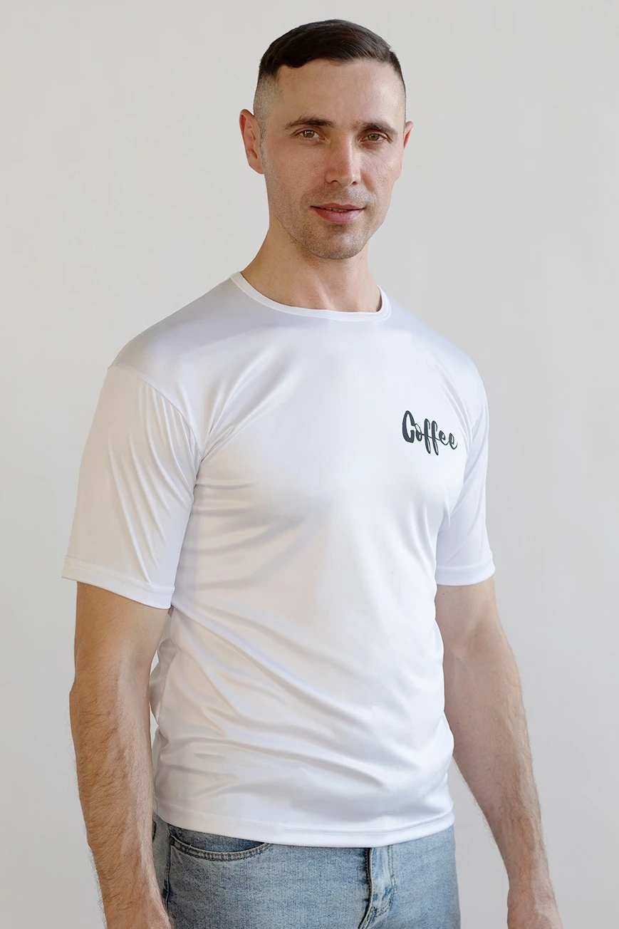 Сублимация. Полноцветная печать осуществляется методом сублимации не более формата А3. Изображение располагается в соответствии с лекалом. Возможна печать на рукавах футболки. Нанесение входит в стоимость изделия!