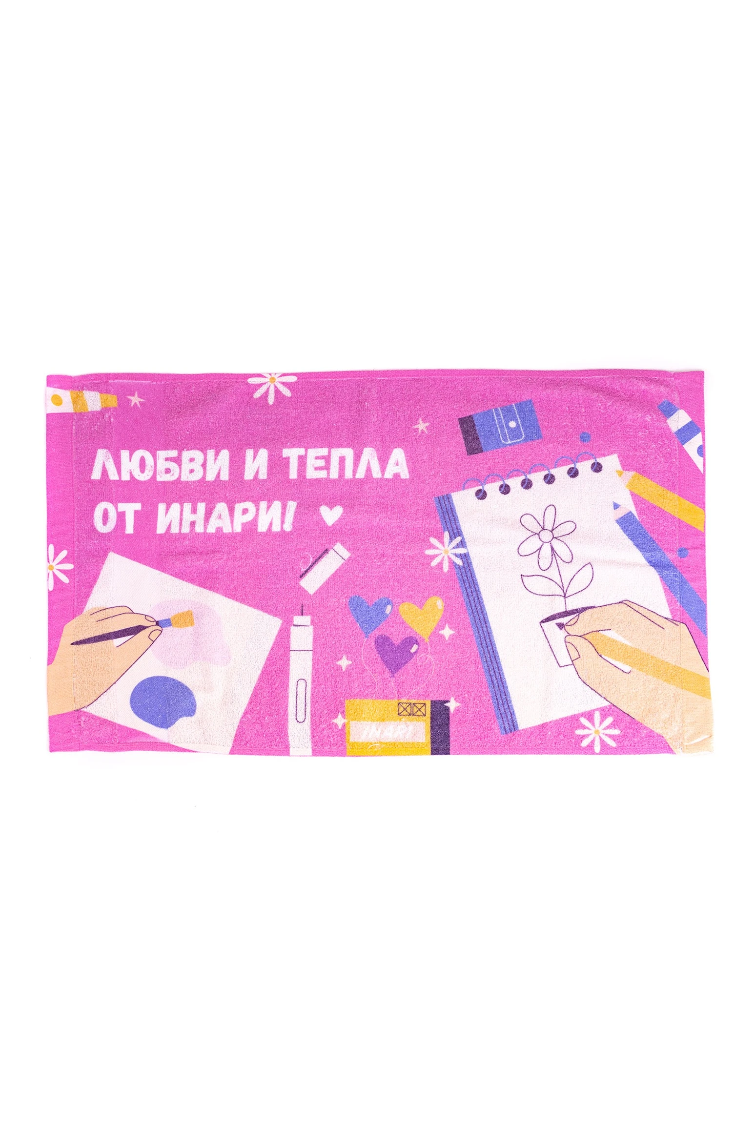 Особенности нанесения: Полноцветное нанесение осуществляется методом сублимации на поверхность полотенца. Изображение размещается в соответствии с лекалом. Печать с двух сторон. В силу технологии сублимация на хлопок ложится с сильным искажением цвета. Цвета становятся бледными. Применяйте в макете пастельные цвета.