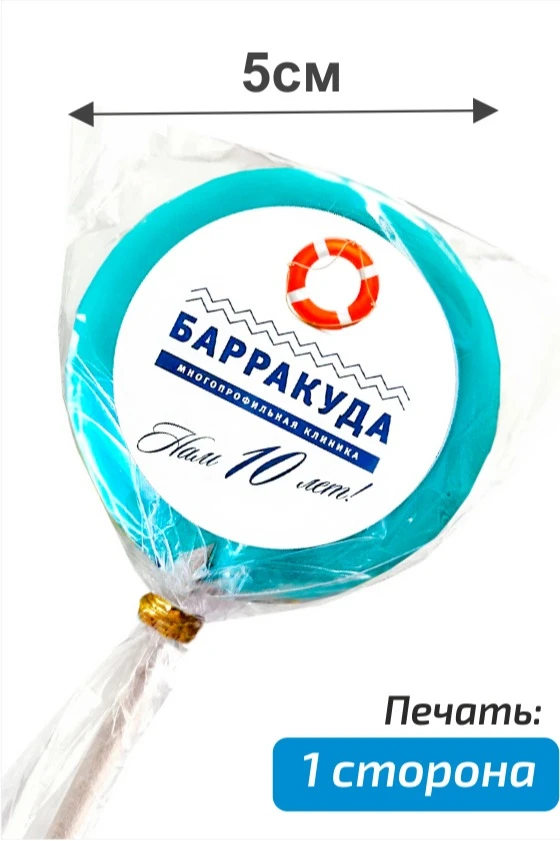 Леденцы диаметром 5 см со съедобным логотипом с одной стороны станут отличным сувениром в дополнении к подарку. Брендированные леденцы часто используют на промоакциях и на открытиях магазинов. Вы можете заказать леденец с нанесением на свое мероприятие в любом цвете и с любым изображением.