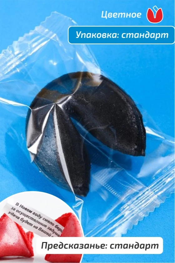 Цветное печенье с предсказанием от компании Корпорация Удачи. Выбирайте тему для предсказания из нашего списка.