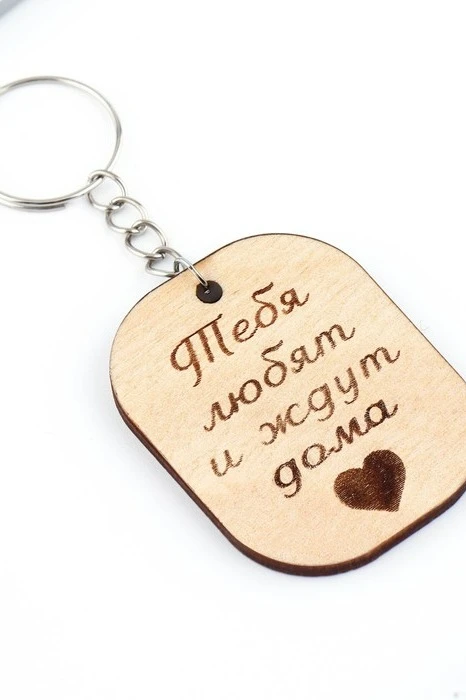 Брелок прямоугольной формы из дерева изготавливается с гравировкой по вашему макету.