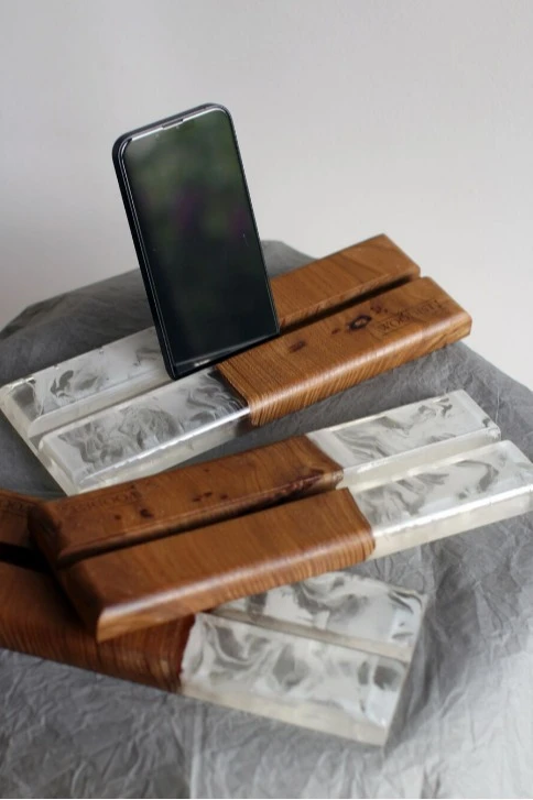 Подставка для планшета и телефона. Выполнена из дерева и эпоксидной смолы с вложением цветов. Такая подставка станет отличным подарком другу, коллеге или родному человеку.