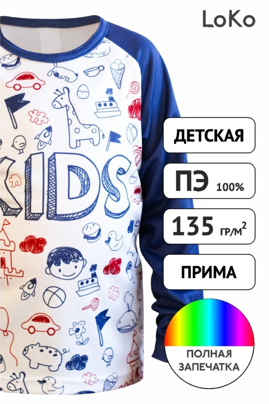 Лонгслив Спэйс плюс с жизнерадостным дизайном придется по душе детям, любящим яркие краски и уютную одежду, в которой можно свободно двигаться. Ткань, из которой сшит лонгслив, практична, гипоаллергенна, обладает стойкостью к многочисленным стиркам и ежедневной носке. Ее можно использовать в качестве единой формы на детских праздниках и спортивных мероприятиях. Мы нанесем на поверхность лонгслива любой рисунок по заказу клиента методом сублимационной печати.