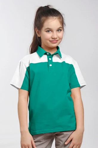 Поло Драйв детская, комбинированная бирюзовая с белой вставкой