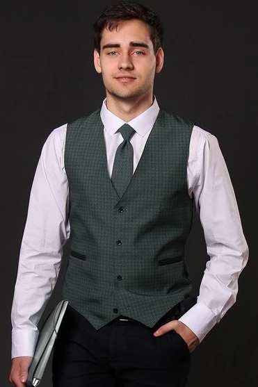 Модель: Жилетка Спикер унисекс классического кроя, с прямым силуэтом. Подклад из шелка расцвечивания. Жилетка застегивается на четыре пуговицы стандартных цветов. По бокам расположены два прорезных кармана в рамку. На задней части жилетки в области талии расположен регулирующий хлястик.