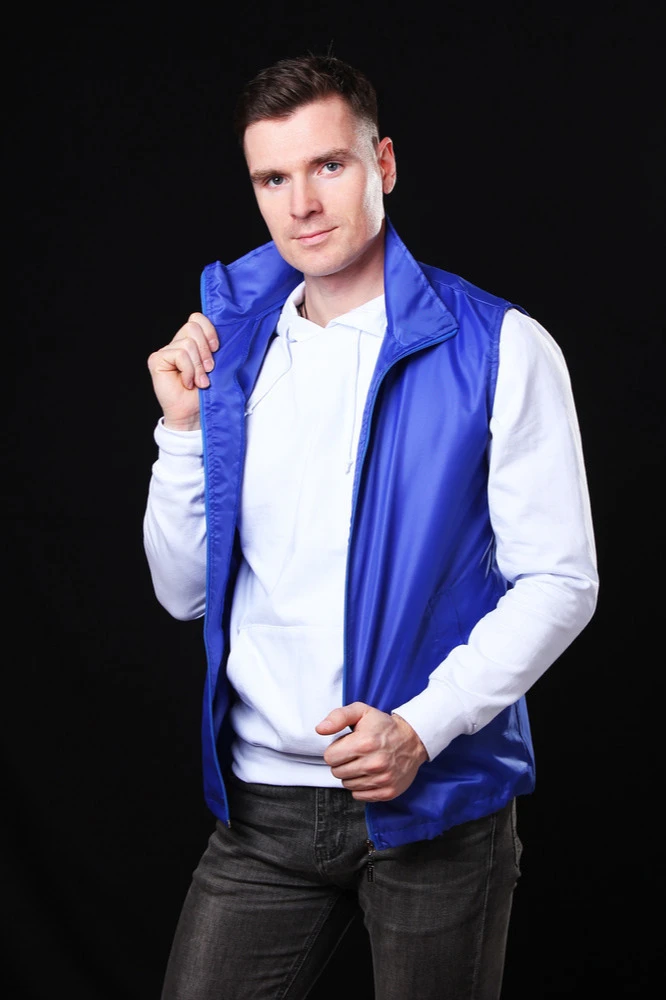 Модель: Жилет Брайт унисекс однотонный, с прямым силуэтом, без капюшона. Два прорезных кармана в листочку, без молнии. Жилет застегивается на молнию стандартных цветов. Молния разъемная. Жилет без подклада.
