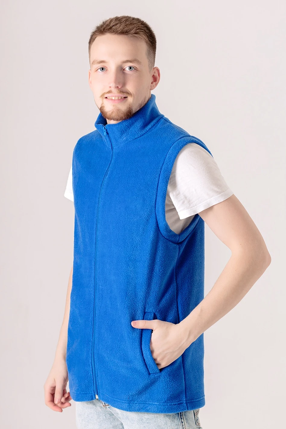 Модель: Жилет Браво унисекс с прямым силуэтом, без капюшона. Жилет застегивается на разъемную молнию стандартных цветов. Два кармана прорезных в листочку без молнии. По низу жилета продета резинка и установлены фиксаторы. Жилет без подклада. За дополнительную плату возможен пошив жилета с подкладом из шелка расцвечивания.