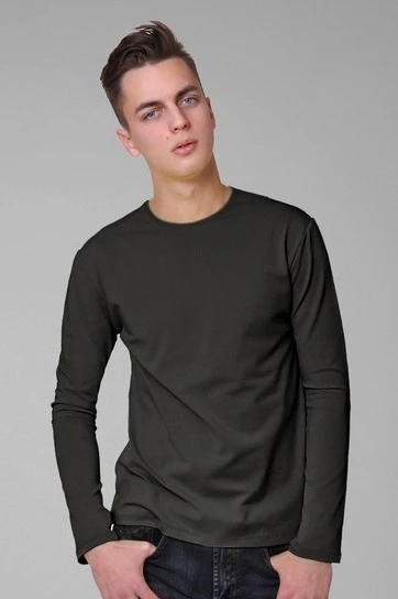 Модель. Прямой силуэт. Рукав длинный. Лонгслив имеет боковые швы без разрезов по низу изделия. Обработка горловины руликом (кантом) из основной ткани в цвет лонгслива или другого цвета. Форма ворота О -образная. Возможно бесплатное комбинирование деталей разных цветов (например, рукава могут отличаться по цвету от остальных деталей).