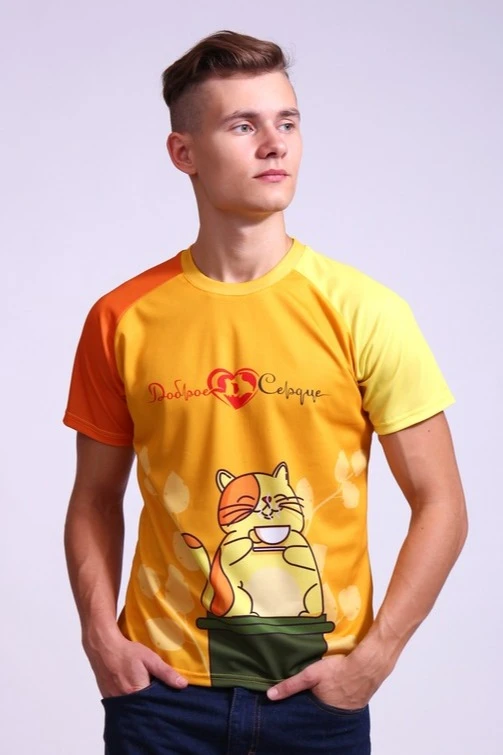 Сублимация. Полноцветная печать осуществляется на всей поверхности футболки в процессе производства. Изображение располагается в соответствии с лекалом. Нанесение входит в стоимость футболки. Совмещение изображения на швах осуществляется за дополнительную плату.