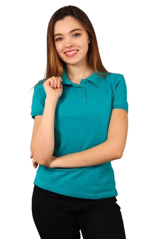 Женские футболки поло Престиж сшиты в классическом стиле – короткий рукав, отложной воротник, планка на три пуговицы. Шарм им придает редкий бирюзовый цвет, который будет хорош в гардеробе любой представительницы прекрасного пола. Поэтому бирюзовые поло с логотипом, компания «Инари» вышьет или напечатает на футболках, могут стать отличным вариантом корпоративного дресс-кода.
