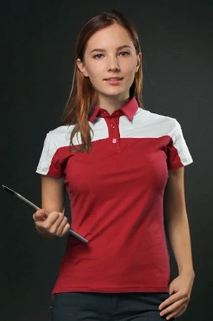 Поло Драйв женская, комбинированная красная с белой вставкой