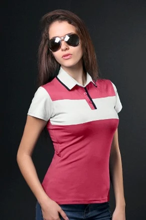 Поло Темп женская, комбинированная розовая с белой вставкой
