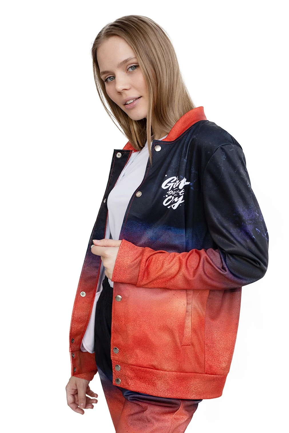 Сублимация. Полноцветная печать осуществляется на всей поверхности бомбера в процессе производства. Изображение располагается в соответствии с лекалом. Нанесение входит в стоимость бомбера.