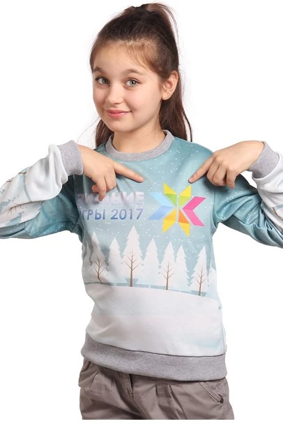 Компания "Инари" осуществляет пошив детских свитшотов. Эти изделия представляют собой промежуточный вариант между свитерами и толстовками. Вся поверхность свитшота может быть запечатана вашим рисунком.